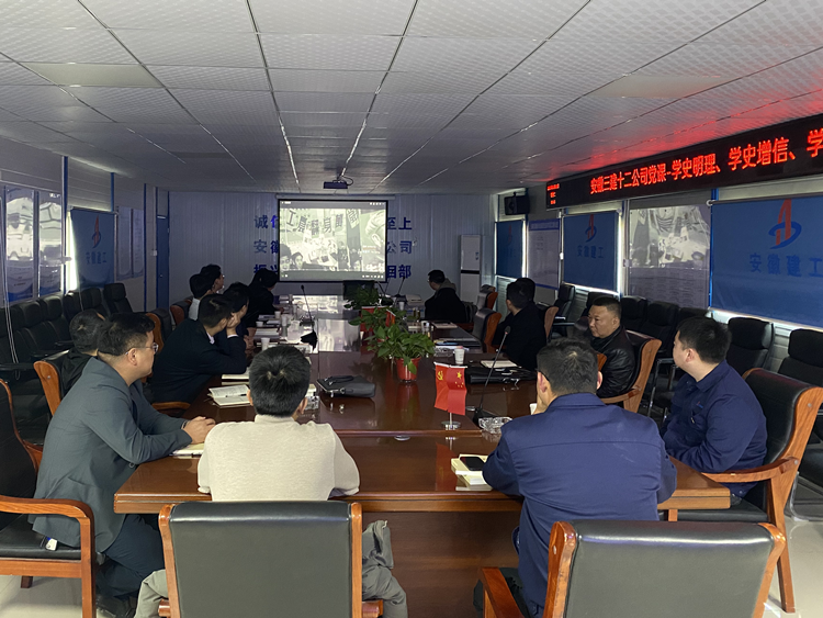 4月6日,十二公司黨支部深入肥東振興EPC項目一線,組織全體黨員開展“學黨史,憶初心”主題黨日活動,支部書記丁玉新講授了“學史明理、學史增信、學史崇德、學史力行”黨史學習專題黨課,大家還一起觀看了革命歷史題材影片《決勝時刻》。
