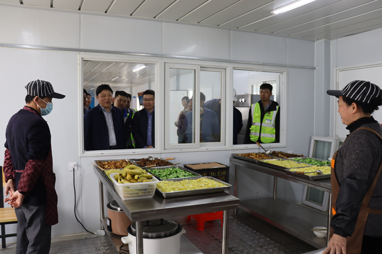 調研中,何洪春一行深入施工現(xiàn)場、員工宿舍和員工食堂,實地察看了施工進度,與員工親切交談,了解員工工作及后勤保障情況。在施工現(xiàn)場何洪春要求,一定要關愛一線員工的生活,努力創(chuàng)造好的生活環(huán)境,做好后勤保障工作,為施工生產有效推進奠定堅實的基礎保障。