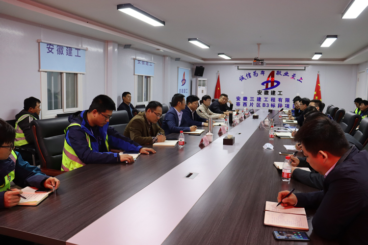 在認真察看項目現(xiàn)場后,何洪春在項目部組織召開了座談會。會上,何洪春對項目取得階段性成果表示肯定,并對施工、安全生產及現(xiàn)場需要解決的重難點問題提出具體意見建議。就項目管理及雄安分公司近期工作,何洪春提出四點要求:一是各參建單位要統(tǒng)一戰(zhàn)線,統(tǒng)一“一盤棋”思想,要快動作、高標準、嚴要求,不打折扣推進工作;二是各工區(qū)、各參戰(zhàn)人員要提高站位、主動作為、加強溝通、勇于承擔、發(fā)揚安徽建工“特別能吃苦、特別能戰(zhàn)斗”企業(yè)作風,克服困難,保障施工;三是項目管理要做好“五好措施”,暨計劃編制好、資源配置好、組織協(xié)調好、督促檢查好、服務保障好;四是雄安分公司要抓住機遇豎品牌、履約工程抓市場,繼往開來,共創(chuàng)輝煌。