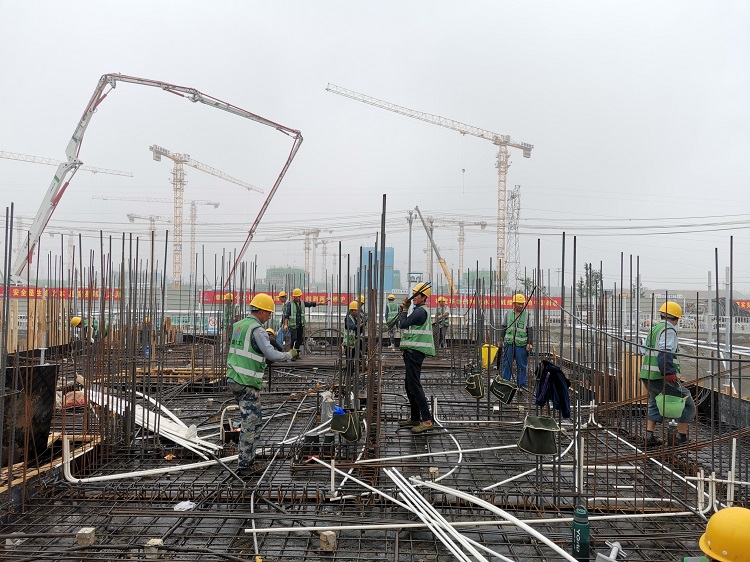 端午佳節(jié),時值盛夏,過節(jié)不停產,堅守第一線,這是雄安容西安置房B3標段項目端午節(jié)當天施工現場的真實寫照。雖然是端午小長假,但工地上所有工作都在有序進行,項目部全體管理人員正常打卡上班,1916名工人一如往常早早來到工地,為確保6月底全部出正負零的節(jié)點任務,現場30多臺塔吊、16臺吊車、11臺叉車、5臺汽車吊全部開足馬力,正常運行。測量放線、鋼筋綁扎、拆模、搭設內架、墻柱鋼筋綁扎、鋪設頂板、混凝土澆筑等工作面交叉作業(yè),秩序井然。全體參建人員頂著高溫,與時間賽跑,把團圓拋在腦后,把目標擺在眼前,共計完成混凝土澆筑6096方,鋼筋使用720噸。