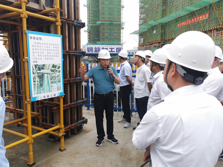 何洪春對合肥市中心圖書館、高新知廬臺兩項目現場保持高標準的常態化、精細化管理情況及項目團隊執行力表示贊賞,對知廬臺項目在高新區第三方檢查中連續兩次蟬聯第一、在建設方飛檢中連續三次獲第一名的優異成績給予充分肯定。