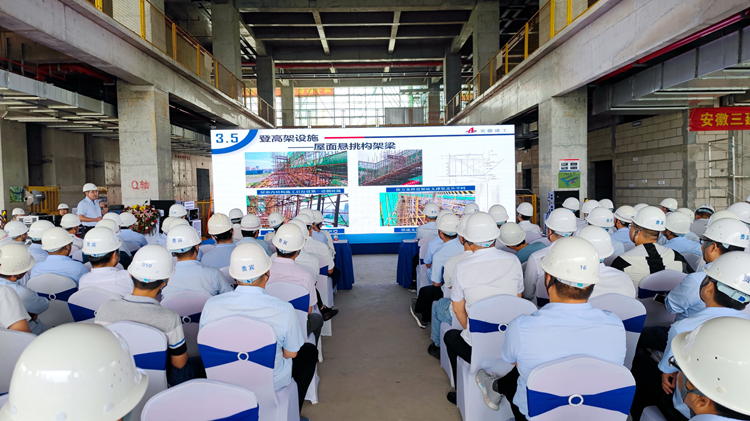 在項目觀摩交流環節,圖書館項目從落實主體職責、堅守安全生產底線、安全工作亮點、階段成果、經驗總結等方面交流了項目安全質量精細化管理經驗;知廬臺項目介紹了項目建設情況并帶領大家參觀了項目樣板區、施工質量安全實體。