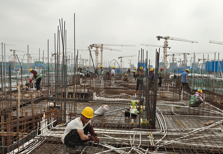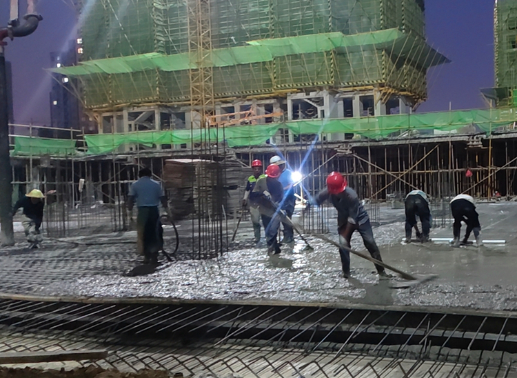廈門公司假日期間汕頭悅江府北區(qū)項(xiàng)目11號(hào)樓進(jìn)行地下室頂板趕工