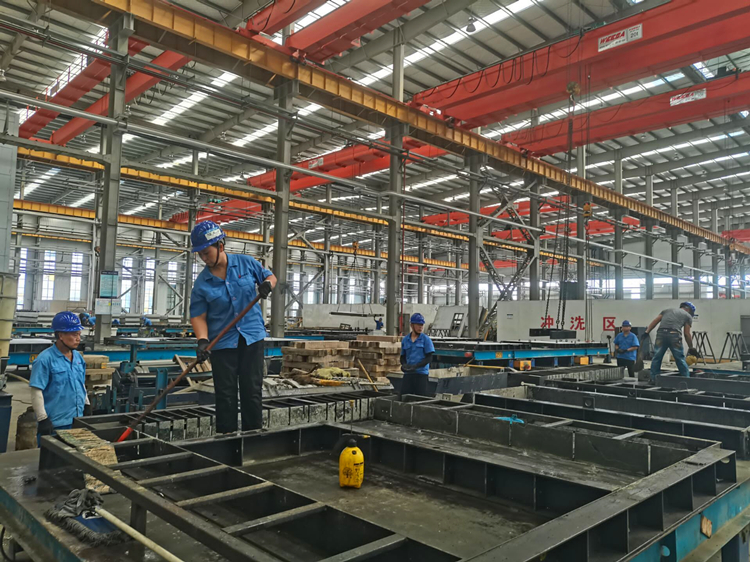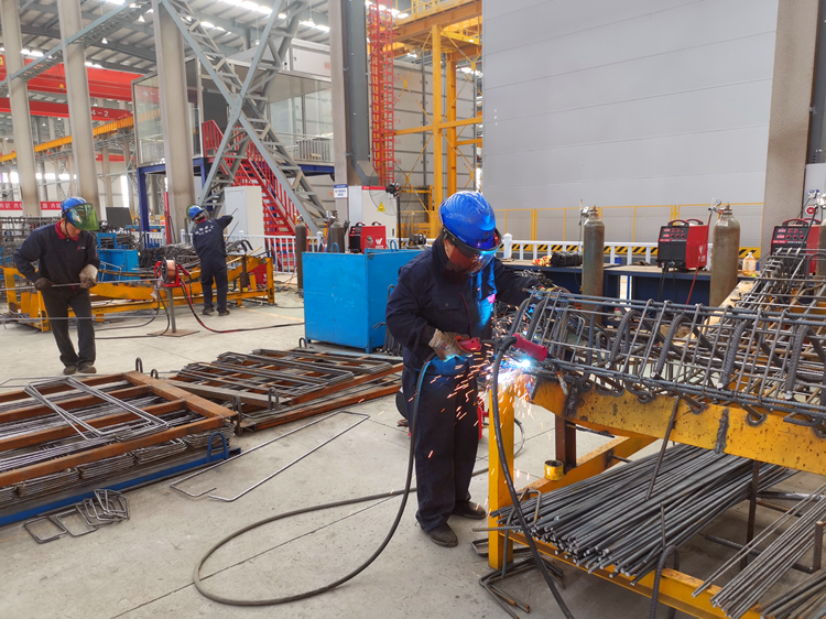 假日期間,建筑工業(yè)公司生產(chǎn)車間有序生產(chǎn),保證預(yù)制構(gòu)件供應(yīng)