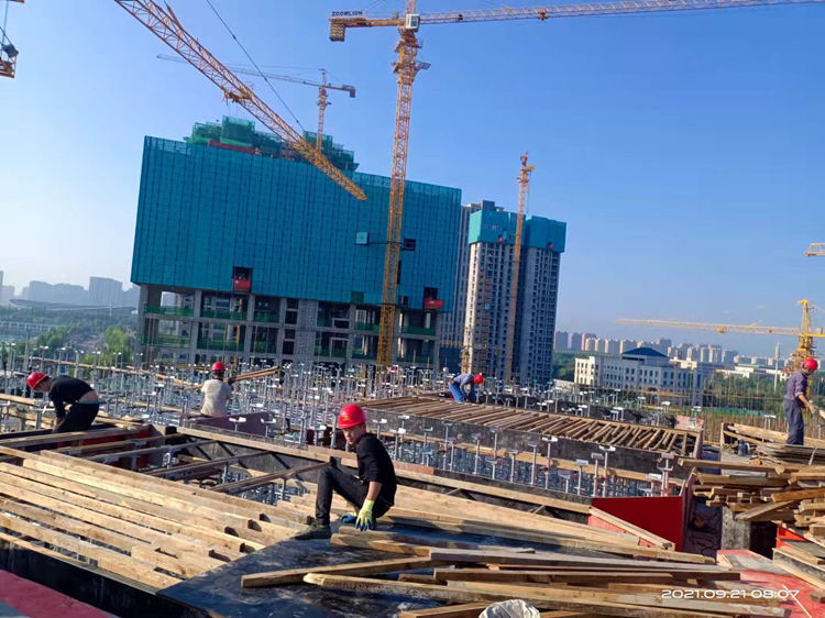 上海公司淄博明發(fā)世貿(mào)中心超高層項(xiàng)假日期間繼續(xù)進(jìn)行3號(hào)樓商業(yè)樓頂板鋪設(shè)工作