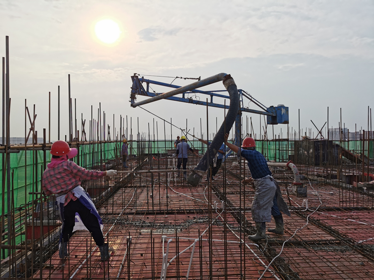 蚌埠公司固鎮(zhèn)漢城源筑項(xiàng)目中秋假期搶抓工期,圖為工人正在澆筑混凝土作業(yè)施工