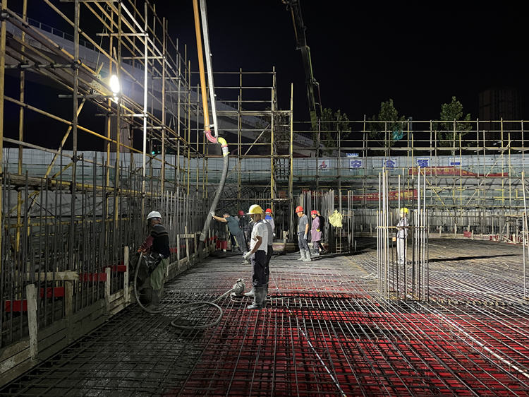 蚌埠公司淮南拓基鼎元世家項目假日期間合理排班,組織夜間澆筑混凝土。