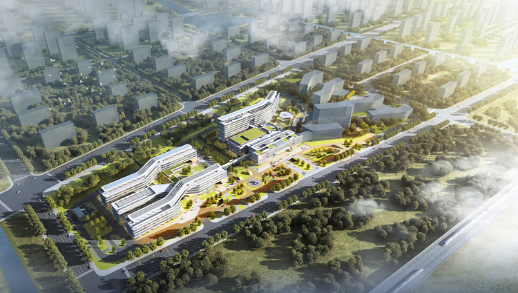 安徽省公共衛生臨床中心(蕪湖)皖南醫學院第一附屬醫院(弋磯山醫院)北區項目位于蕪湖市江北新興產業集中區大龍灣區,通江大道以南、江北東路以東、站北路以北、經五號路以西圍合的地塊,總用地面積 18.7萬平方米,建筑面積為17萬平方米,其中,地上建筑面積約為11.2萬平方米,地下建筑面積約5.8萬平方米。