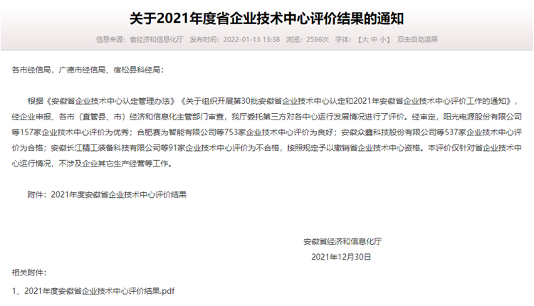 根據《安徽省技術中心認定管理辦法》,省企業技術中心實行優勝劣汰、動態調整的運行評價制度。省經濟和信息化廳原則上每兩年組織一次對省企業技術中心的運行評價,評價得分90分及以上為優秀。評價材料主要包括省企業技術中心年度工作總結、評價表及其附表和相關的證明材料,安徽三建工程有限公司已連續兩屆被評定為安徽省企業技術中心優秀。