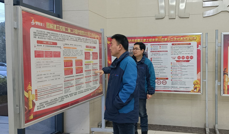 日前,建工控股二屆二次職代會暨2022年工作會順利召開。安徽三建公司積極行動,通過懸掛職代會精神掛圖、召開學習會、工作部署會等方式,及時學習宣傳貫徹會議精神,在公司上下掀起學習宣貫熱潮,讓廣大員工全面、準確地了解集團2022年工作思路、奮斗目標及總體工作部署,統一思想、提振信心,激勵廣大干部員工踔厲奮發、篤行不怠,埋頭苦干、勇毅前行,為奮力譜寫安徽建工高質量發展新篇章,建設現代化美好安徽作出新的更大貢獻,以優異成績迎接黨的二十大勝利召開。
