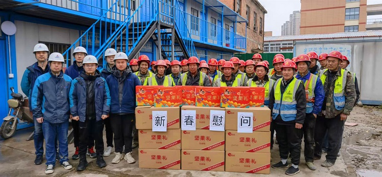 合肥一中東校區(qū)項(xiàng)目,裝飾公司、安裝公司、七公司聯(lián)合開(kāi)展春節(jié)慰問(wèn)活動(dòng),為堅(jiān)守在一線(xiàn)的施工人員送上新春祝福和由衷感謝。期間,項(xiàng)目部還開(kāi)展了談心談話(huà)活動(dòng),詳細(xì)了解留守一線(xiàn)職工身體狀況、家庭生活情況,聽(tīng)取他們對(duì)項(xiàng)目施工的意見(jiàn)建議。