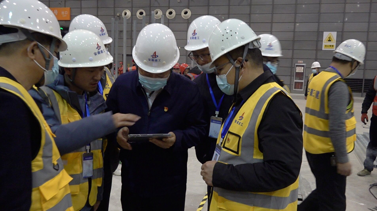 為了爭取時間,三建提前做好了人員、物資的準備工作,圖紙還未下達,安徽三建已經調集近200多名本地工人,落實核酸檢測和查驗雙碼,為進場施工做好準備工作。拿到圖紙后4個小時,項目部就制定了交叉作業的科學施工方案,同時下達了精確到小時的施工進度計劃。裝飾、安裝、土建立即投入施工。制定解決方案。辦法總比困難多。在施工過程中發現任何問題,項目部立即現場解決?,F場停水48小時,項目就調用消防水車、購買飲用水,千方百計保證項目不停工。三建參戰的裝飾、安裝、土建團隊緊密配合,形成合力,確保了各項工作高速推進。