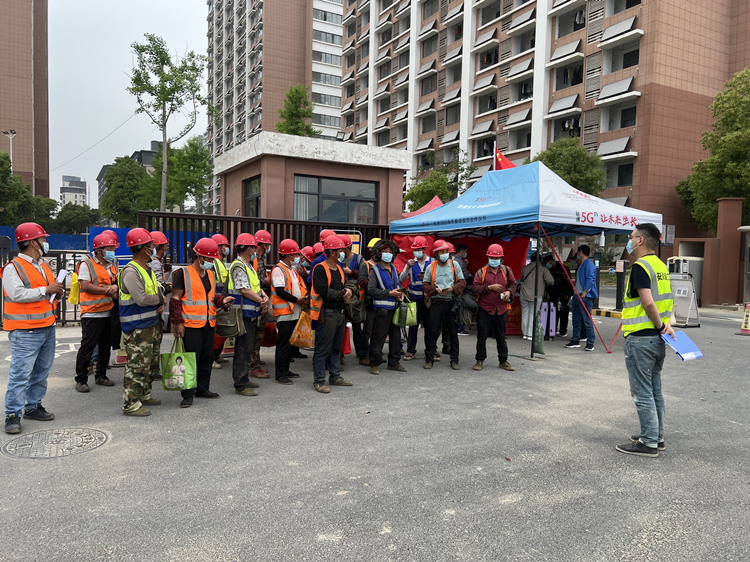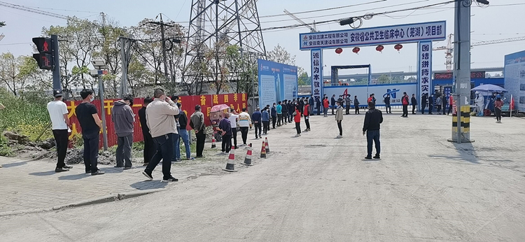因受蕪湖當(dāng)?shù)匾咔橛绊懀?dāng)?shù)刂鞴懿块T要求安徽省公共衛(wèi)生臨床中心(蕪湖)項(xiàng)目實(shí)行封閉式管理,為保障項(xiàng)目生產(chǎn)施工工作正常運(yùn)行,項(xiàng)目部組織全體人員進(jìn)行為時(shí)七至十四天的每日一次核酸檢測,為保障項(xiàng)目各項(xiàng)工作有序推進(jìn),分公司團(tuán)支部組織號召該項(xiàng)目青年團(tuán)員志愿者維持現(xiàn)場秩序,協(xié)助進(jìn)行核酸檢測登記、掃碼等工作。