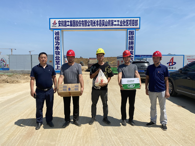 自7月13日開始,基礎公司領導班子成員先后前往長豐縣吳山鎮第二社區等6個項目開展送清涼活動,為在高溫下作業的一線工作人員送去礦泉水、綠豆、白糖、藿香正氣水等防暑降溫用品,給他們送去烈日下的清涼和關懷。 基礎公司經理、支部書記袁學明代表基礎公司,對奮戰在項目一線正在進行工程基礎施工的項目職工進行了慰問,同時提醒大家要靈活安排工作,注重崗位安全,在工作的同時要注意防暑降溫,增強自我安全防范意識,確保身體健康。