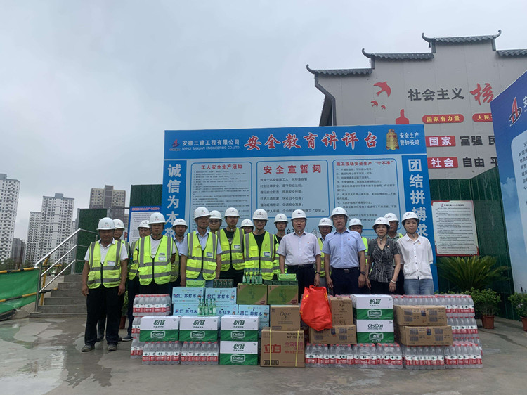 7月以來,伏天酷暑,高溫“炙烤”,安徽省持續(xù)高溫,多地氣溫接近40℃,給一線建設(shè)者們帶來嚴(yán)峻“烤”驗(yàn)。為切實(shí)做好夏季安全生產(chǎn)和防暑降溫工作,落實(shí)“我為群眾辦實(shí)事”工作部署,安徽三建適時(shí)開展“送清涼”活動(dòng),為奮戰(zhàn)在現(xiàn)場(chǎng)一線的項(xiàng)目管理者們送去關(guān)心愛護(hù),保障一線員工的身體健康,助力企業(yè)安全生產(chǎn)。