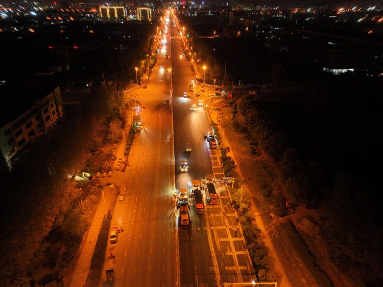 通過高效的調配資源,科學的工序安排,完備的服務保障,項目團隊快速有效地完成了圍擋安裝、路面銑刨、路基病害處理、側石安裝、井蓋提升、防裂貼施工、瀝青油撒布、攤鋪瀝青、標線劃定等在內的一道道施工工序。最終實現了東半幅施工任務的提前完成。