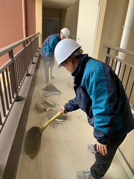 共有2名黨員,20多名團(tuán)員參加此次義務(wù)勞動(dòng)。在黨員同志的模范帶頭下,大家深入三期工程現(xiàn)場(chǎng),圍繞工程竣工收尾階段對(duì)高層25#、26#、27#樓進(jìn)行衛(wèi)生清理,主要清掃每層樓的公共區(qū)域及連廊部分。雖然天氣寒冷,但是大家熱情高漲、干勁十足。大家分工合作,由上至下,不放過(guò)每一個(gè)角落的垃圾。在3個(gè)多小時(shí)的共同努力下,大家共完成了102層樓的衛(wèi)生清理工作。