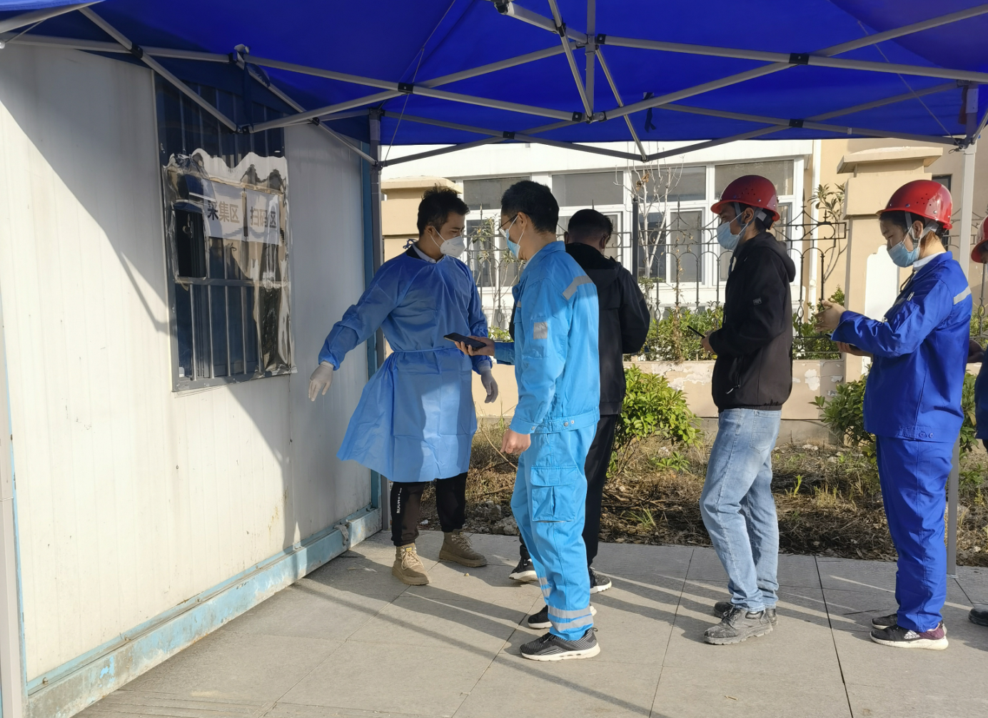 近日,北城工業公司黨支部積極響應吳山鎮政府防疫部門號召,共派遣6名志愿者前往核酸檢測常駐點參與核酸采集工作與維穩工作。公司兩名領導班子老黨員主動帶頭報名,組成了“五十多歲的‘老黨員’+退伍武警‘新黨員’+優秀青年‘團員’”的新志愿團隊,共同參與疫情防控工作。