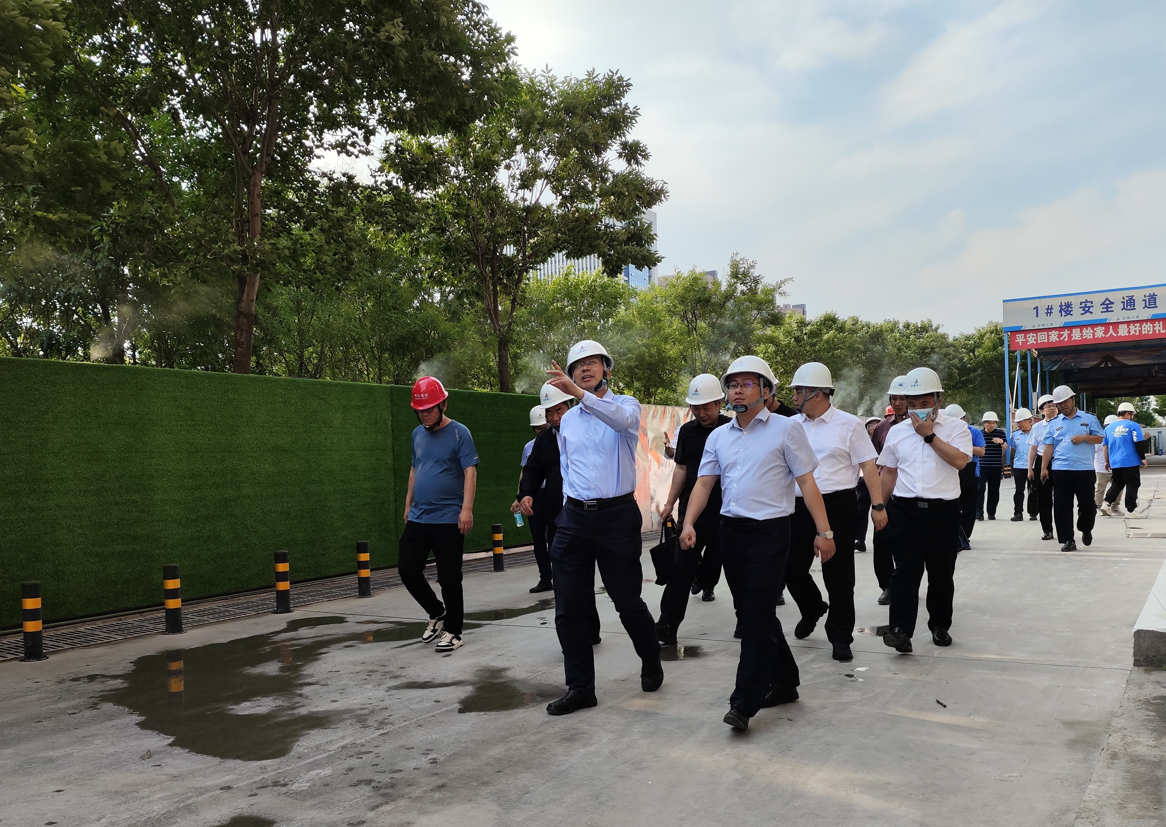 5月24日,山東省生態(tài)環(huán)境保護(hù)督察專員霍太英一行赴安徽三建華東公司淄博明發(fā)世貿(mào)中心超高層項(xiàng)目現(xiàn)場(chǎng)視察工地?fù)P塵管控措施落實(shí)情況。