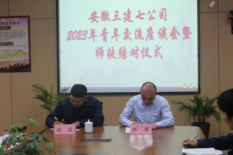 5月13日下午,七公司在江淮學院項目組織召開2023年青年交流座談會暨師徒結對儀式,19名青年職工和20名在建項目班子成員、骨干參加。