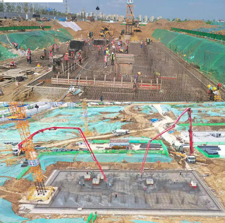 開工以來(lái),項(xiàng)目部積極開展職工思想教育活動(dòng),引領(lǐng)全體干部職工思想上統(tǒng)一、行動(dòng)上自覺、力量上團(tuán)結(jié),抓住施工生產(chǎn)黃金期,以主人翁的責(zé)任感和沖鋒的姿態(tài),奏響勞動(dòng)競(jìng)賽最強(qiáng)音。截至目前,項(xiàng)目已安裝塔吊6臺(tái),土方外運(yùn)136500立方,主樓工程樁1400根,地庫(kù)抗拔樁730根,完成7棟主樓墊層施工,5棟主樓筏板澆筑,2棟主樓主體負(fù)一層頂板鋼筋綁扎,共計(jì)完成產(chǎn)值4216萬(wàn)元。