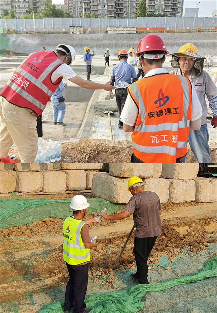 為切實保護(hù)廣大工友身體健康,保障項目施工進(jìn)度,各項目部采取調(diào)整作業(yè)時間,避免高溫時間作業(yè),為操作工人發(fā)放仁丹、藿香正氣水、鹽汽水、冰棒等防暑降溫物品,準(zhǔn)備臨時納涼房等防暑降溫措施,以實際行動, 為建設(shè)者撐起生命安全的“清涼傘”。