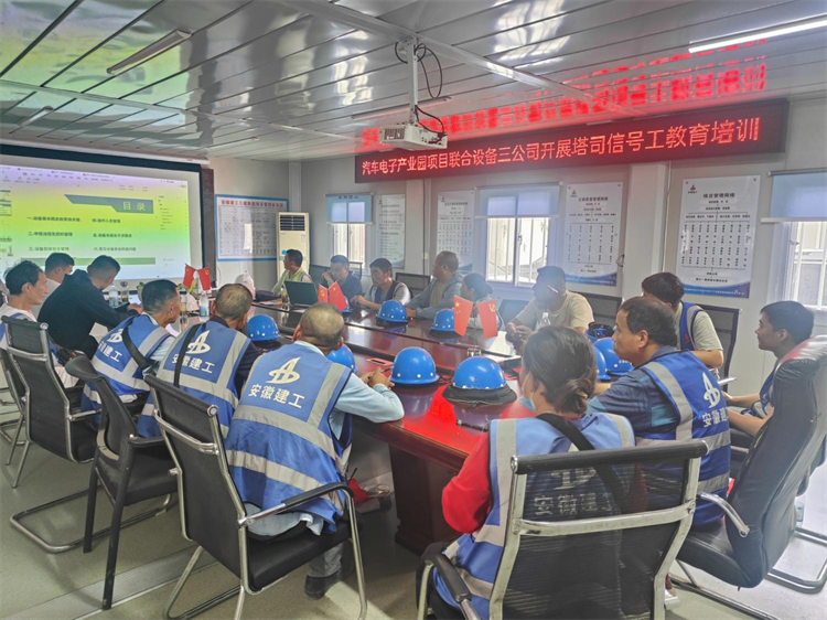 隨后,活動人員前往項目部會議室,開展專項教育培訓工作。培訓通過理論加實踐、現(xiàn)場加圖文等形式,結合演練開展情況,對塔司及信號的工作業(yè)要求和注意要點、項目部對起重吊裝的管理重心、設備公司的協(xié)同配合等做出了剖析和要求,使每一位參培人員都收獲頗豐。