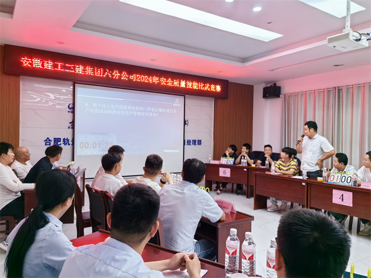 為積極響應全國“安全生產月”活動號召,強化全體職工安全素質,6月28日下午,六分公司于軌道4號線項目部舉辦2024年安全質量技能比武競賽。