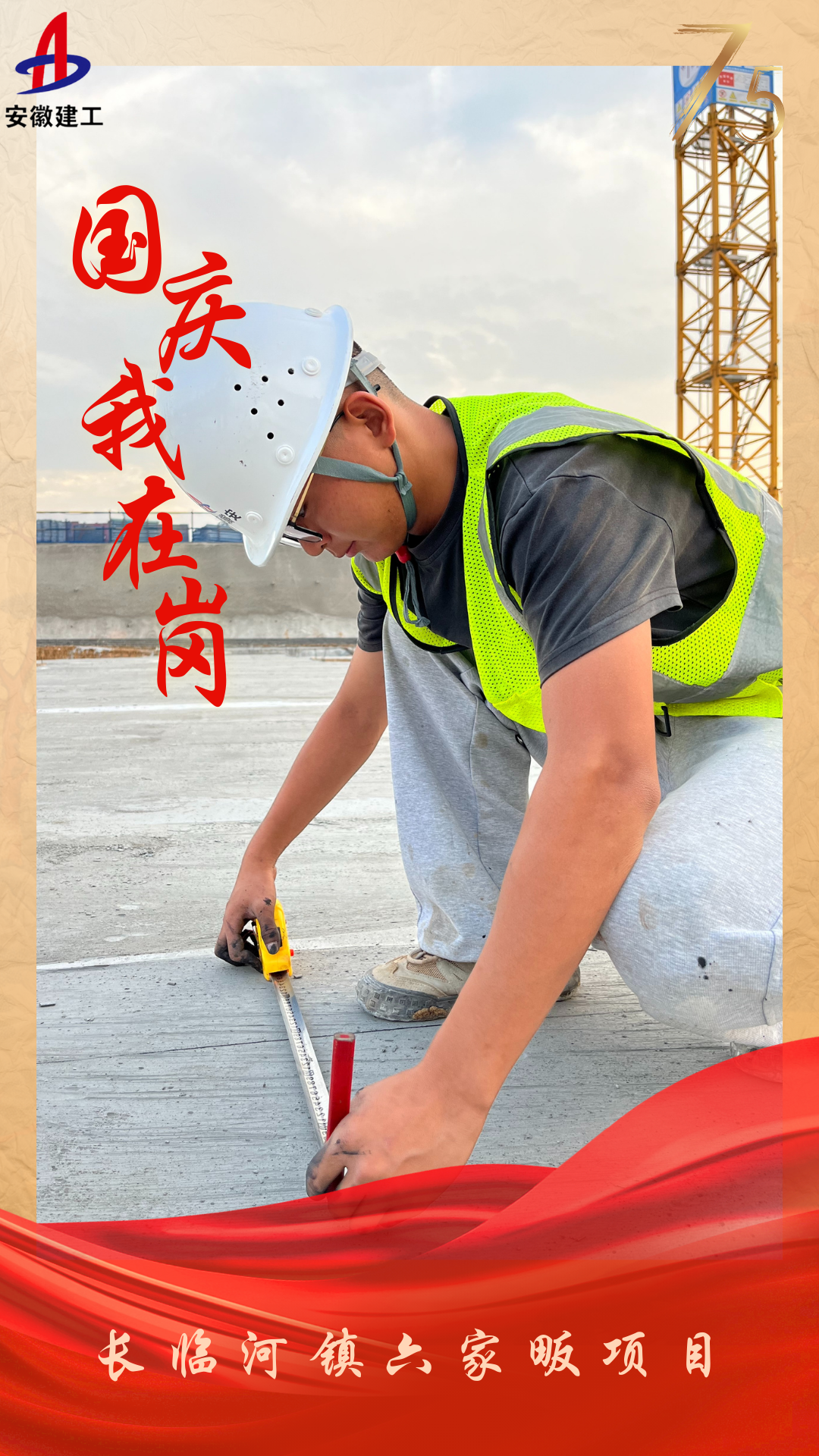 長豐紫桐苑安置點一期項目技術員詹輝松正在進行水平構件進場預驗收自檢自測工作。