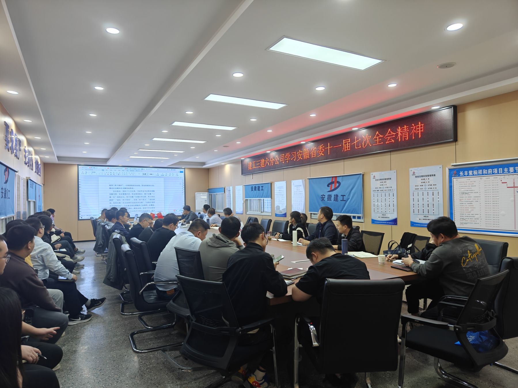 9月19日下午,六分公司組織分公司領導班子、科室負責人、項目經理、項目技術總工、項目核算員等40余人傳達學習省委十一屆七次全會精神。