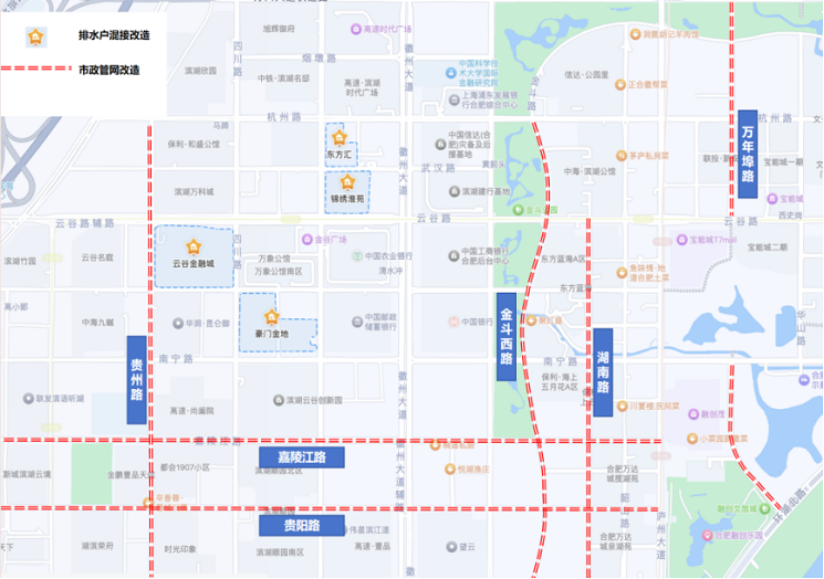 兩項目主要內容為東方匯、錦繡淮苑等10個排水戶雨污分流改造工程,貴州路、包河大道、廬州大道等12條主要道路的排水管網建設,全流域雨污水排水管網排查復查檢測。目前,項目管理人員正在進行前期相關手續報建等準備工作。