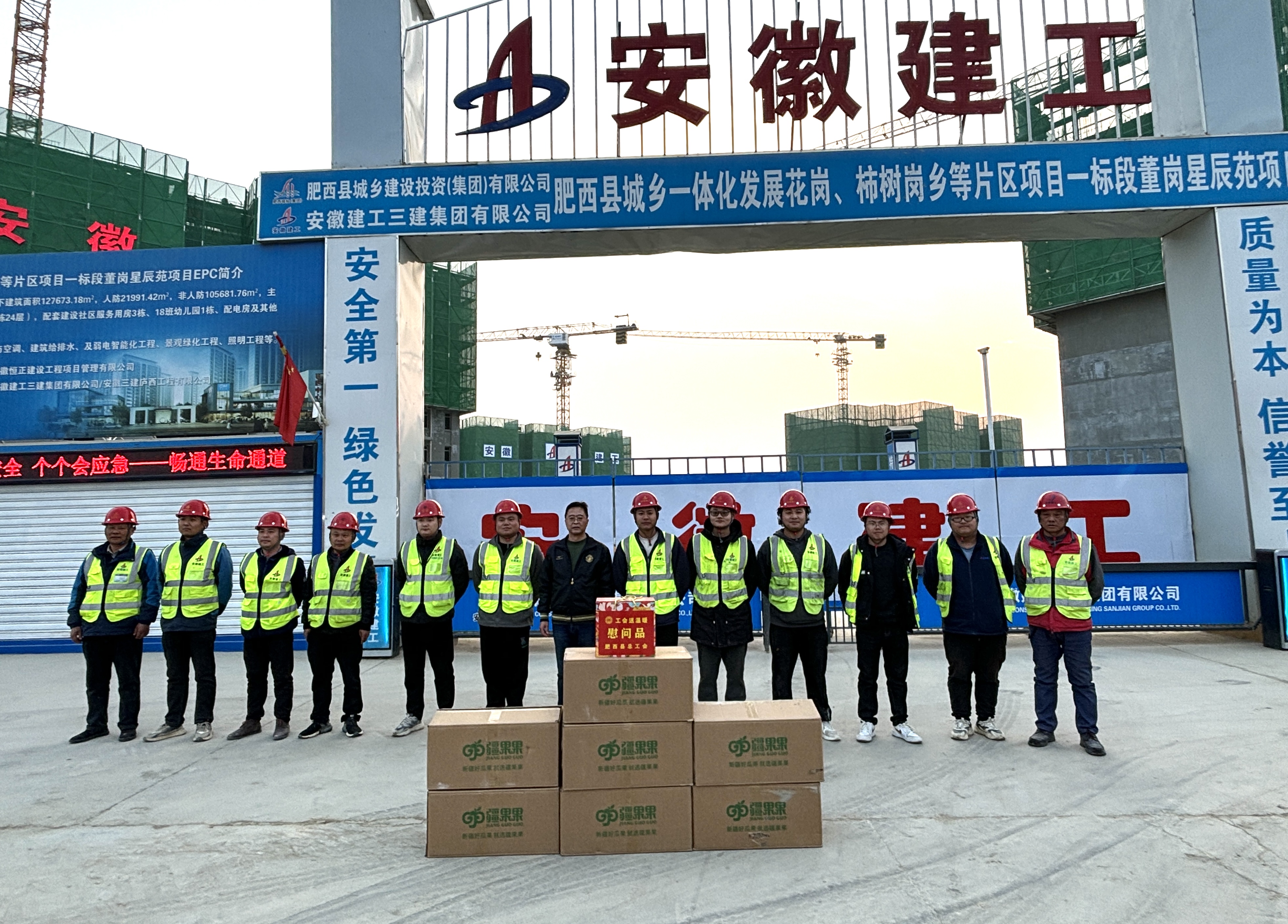 1月22日下午,肥西縣總工會赴星辰苑項目,為堅守在崗位上的一線工友們送上了暖心禮包,致以新春的美好祝福。