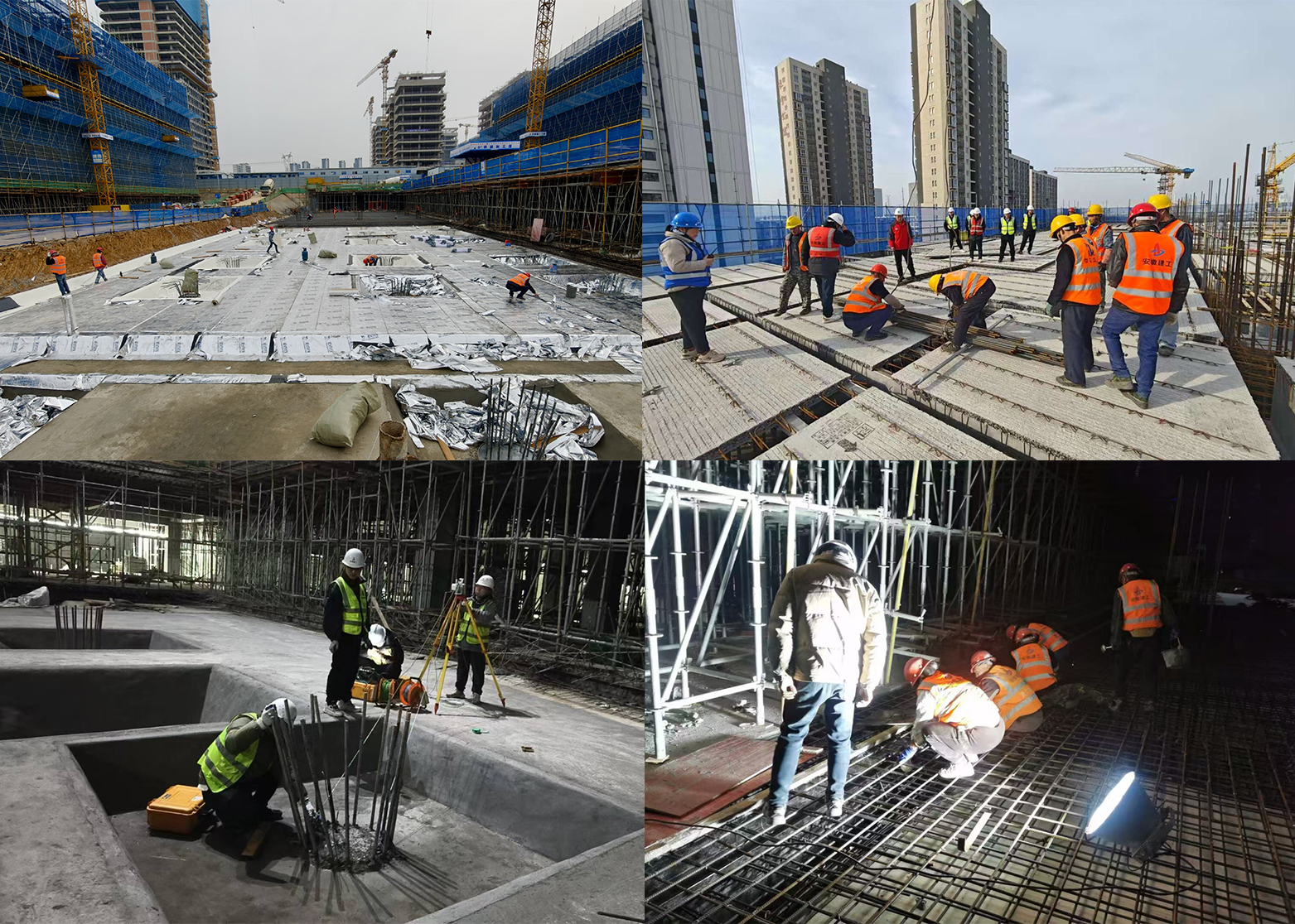 春節復工后,項目部開足馬力,緊抓C04#樓屋面吊模模板拆除及清理工作,C05#樓、B06#樓鋁模板面拼裝、混凝土澆筑,以及地庫S15段頂板模板鋪設、N4段內架搭設、N5段頂板模板鋪設,確保了工程全面進入正常施工狀態。