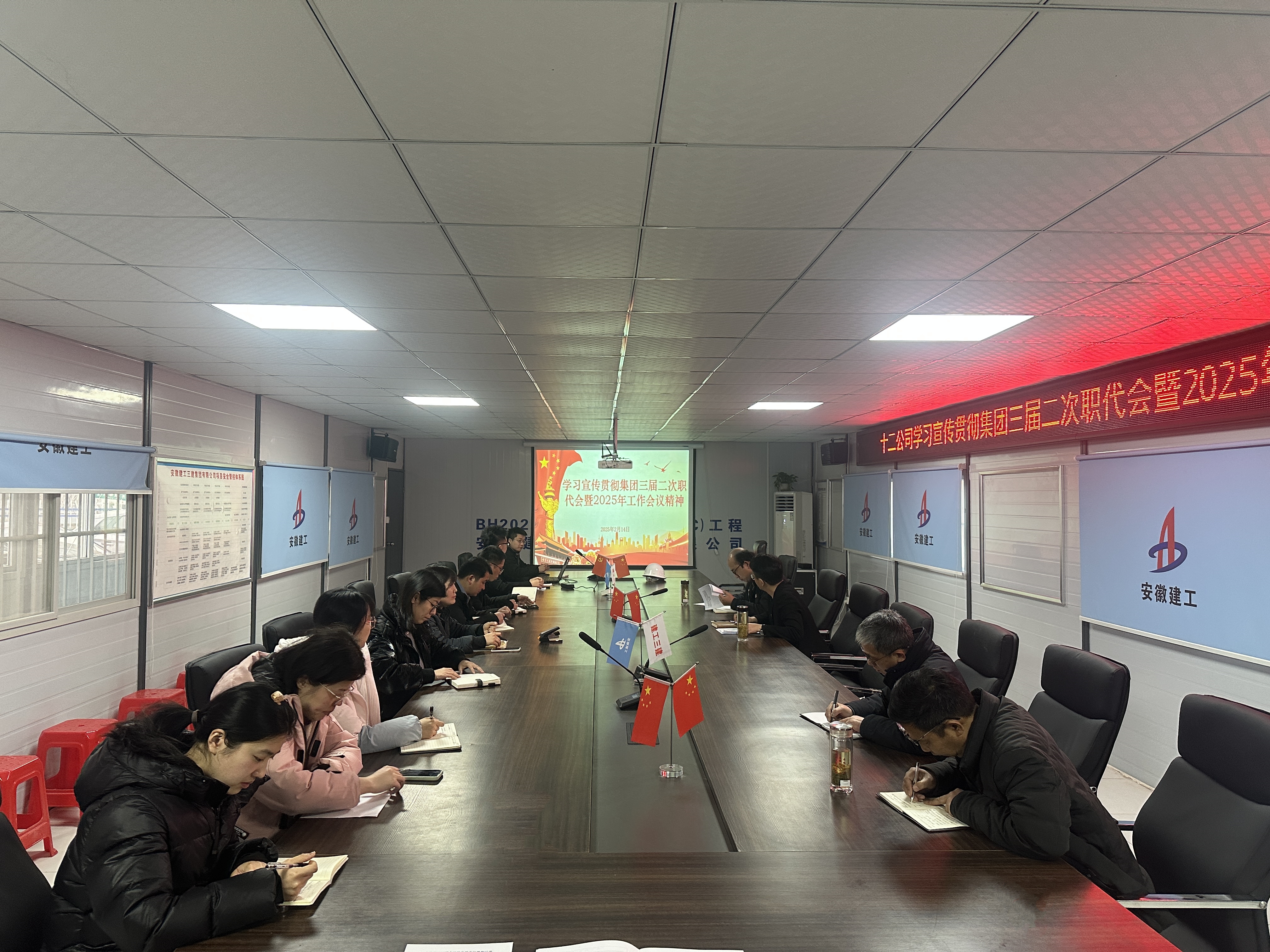 為深入貫徹集團三屆二次職代會暨2025年工作會議精神,近日,機關黨總支組織開展專題學習會議。會議傳達學習了集團黨委書記、董事長楊善斌作的題為《改革創新 擔當作為 強化企業管理 加快轉型升級 奮力推進安徽建工集團高質量發展大發展》講話精神和集團黨委委員、總會計師王淑德作的《集團年度工作報告》精神,并邀請集團職工代表陳鵬重點圍繞集團在成本控制和物資管理方面的戰略部署進行詳細解讀。與會職工紛紛表示,集團職代會暨工作會議精神為今后的工作提供了明確的方向,大家將積極貫徹落實,不斷提升業務能力和服務水平,加強創新與精細化管理,為集團轉型發展、高質量發展、大發展貢獻力量。 為迅速貫徹落實建工集團三屆二次職代會暨2025年工作會議精神,全面推動分公司新一年目標任務落地,近日,九分公司召開集團三屆二次職代會精神專題學習會議,并部署分公司2025年全年重點工作。會議重點傳達學習了集團黨委書記、董事長楊善斌作的題為《改革創新 擔當作為 強化企業管理 加快轉型升級 奮力推進安徽建工集團高質量發展大發展》講話精神和集團黨委委員、總會計師王淑德作的《集團年度工作報告》精神。會議強調,全體職工要深刻領會會議精神,切實把思想和行動統一到集團黨委各項決策部署上來,各項目部要迅速組織專題學習,通過集中研討、宣貫宣講、線上學習等方式,確保會議精神傳達到項目每一位職工,轉化為推動實際行動力和工作的具體措施,以“開局即決戰、起步即沖刺”的奮斗姿態,為公司高質量發展貢獻更大力量! 近日,十二分公司機關和所屬各項目部積極行動,全面學習宣貫集團三屆二次職代會暨2025年工作會議精神,掀起學習熱潮。會議傳達學習了集團黨委書記、董事長楊善斌作的題為《改革創新 擔當作為 強化企業管理 加快轉型升級 奮力推進安徽建工集團高質量發展大發展》講話精神和集團黨委委員、總會計師王淑德作的《集團年度工作報告》精神。會議要求,分公司全體干部職工在認真學習會議精神的基礎上,緊緊圍繞發展目標,夯實工作路徑,切實將學習成果轉化為工作思路和實際成效,奮力譜寫公司高質量發展新篇章。 近日,留守處召開專題會議集中學習宣貫集團三屆二次職代會暨2025年工作會議精神。會上,與會人員結合近期學習集團核心價值觀的思想感悟及自身工作,交流了心得體會,紛紛表示將以集團職代會暨工作會議精神為引領,把思想和行動統一到集團黨委各項決策部署上來,堅定信心、明確目標、真抓實干,做好各項目標任務的措施制定和任務分解,繪制時間表、路線圖,責任落實到人,為全面完成公司下達的各項任務履職盡責。下一步,留守處班子成員將按分工,前往所轄項目及駐外機構,深入一線開展面對面宣講,確保集團職代會暨工作會議精神宣貫傳達到每一名職工,為集團轉型發展、高質量發展、大發展貢獻力量。