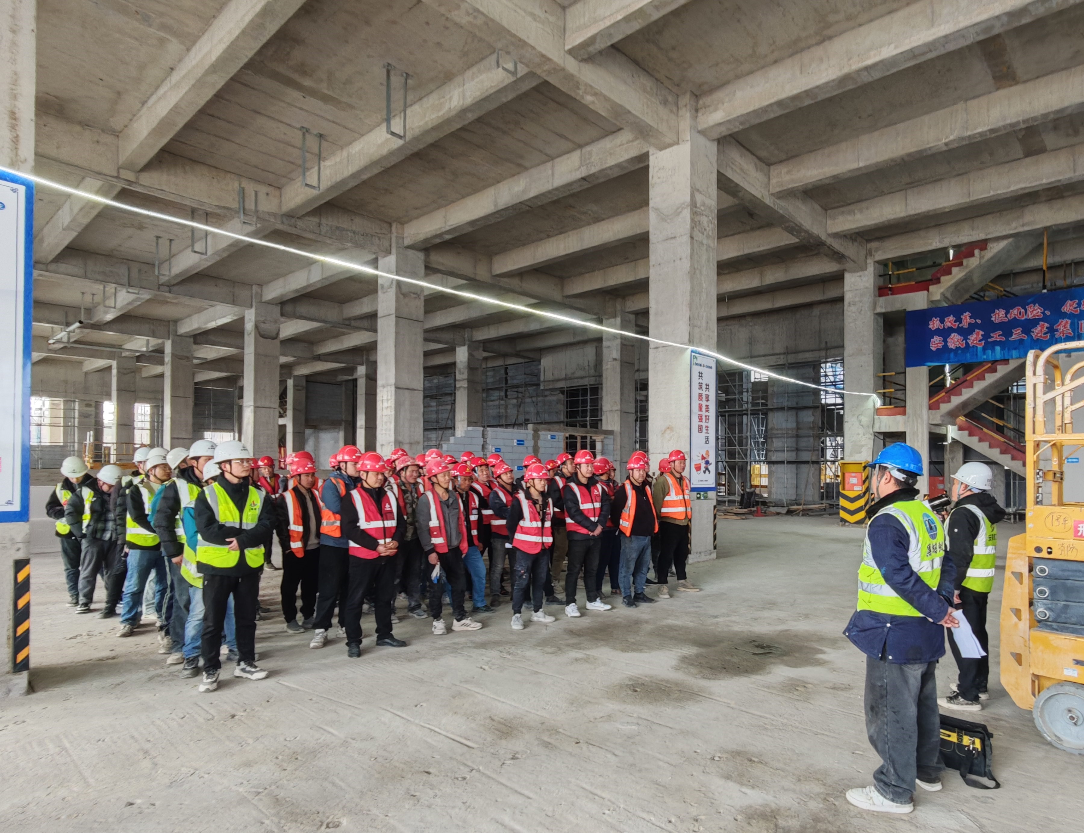 為深入貫徹落實集團及公司兩級職代會精神,強化項目管理,深化黨建引領,皖南公司于近日在弋江區新型產業園啟動區項目和經開區汽車電子產業園項目依次組織開展高處作業及剪叉式高空作業車安全專項培訓工作。以黨建引領為抓手,以科技創新為支撐,全面提升安全管理水平,為企業高質量發展注入“紅色動能”。本次培訓覆蓋項目經理、安全員、工人等,通過“黨建+安全”融合模式,推動安全責任落地、風險防控升級、文化氛圍營造,為項目建設筑牢安全屏障。