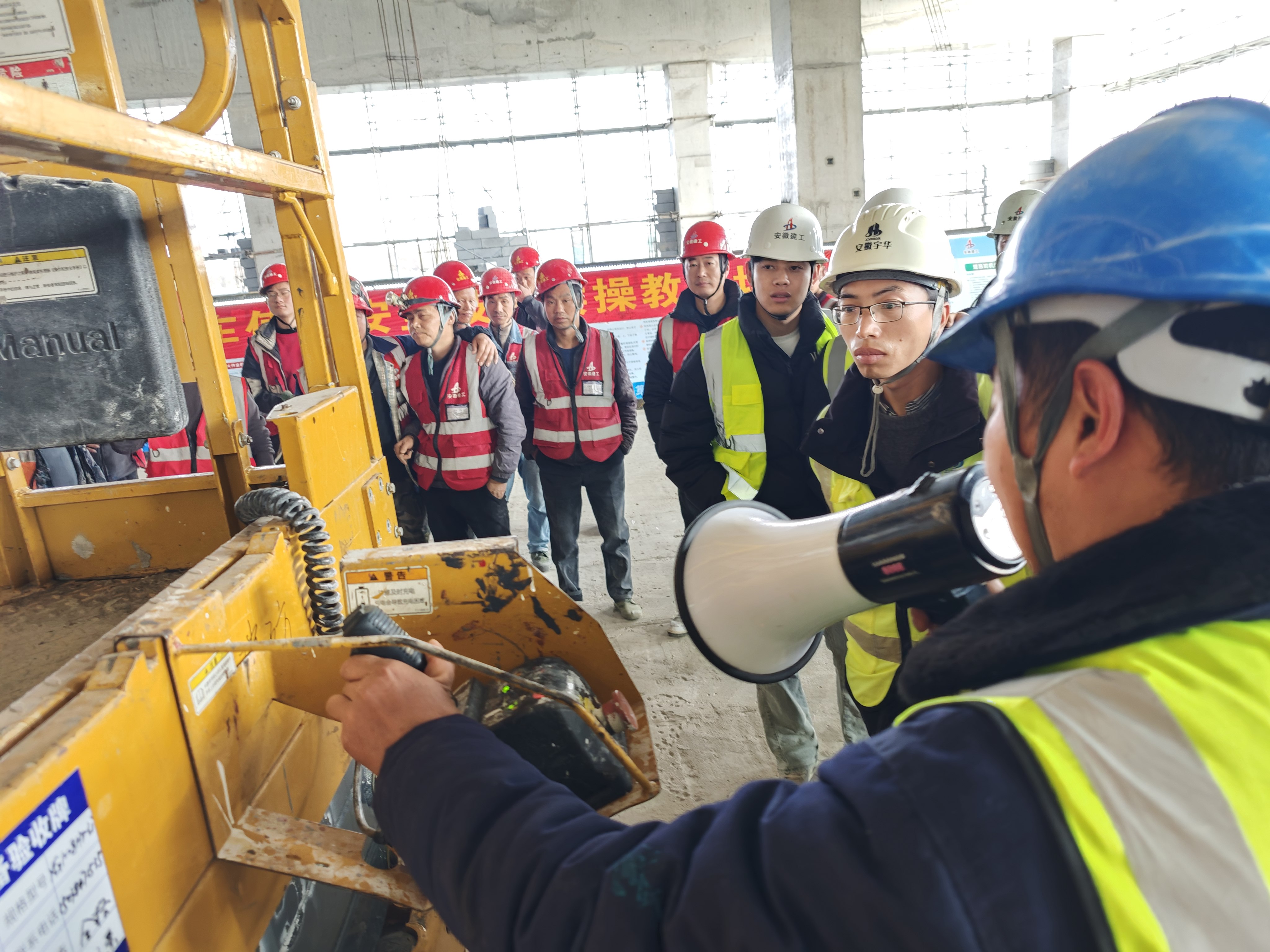 分公司黨支部充分發揮“把方向、管大局、保落實”作用,以“黨員技術攻堅小組”為載體,精準對接項目安全需求。通過黨支部協調資源,特別邀請弋江區新型產業園項目剪叉式高空作業車供貨單位技術負責人開展“黨建+技術”雙師教學。參訓人員圍繞設備結構裝置、操作流程等核心要素展開深度學習,重點突出“黨員安全責任區”設備監管要求,將“持證上崗、規范操作”的剛性規定轉化為黨員帶頭踐行的行動準則?,F場設立黨員安全示范操作臺,通過“黨員帶群眾”“師帶徒”的紅色傳承模式,確保技術規范入腦入心。