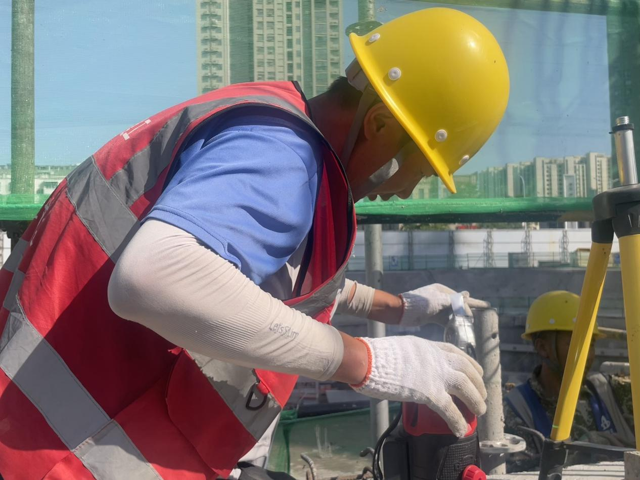 “五一假期天氣晴好,正是施工的黃金期,我們必須爭分奪秒搶進度。”項目經理鄭濤一邊仔細檢查施工質量,一邊介紹道。在他身后,工人們正專注地忙碌著,安全帽下是一張張被汗水浸濕卻依然堅毅的面龐。