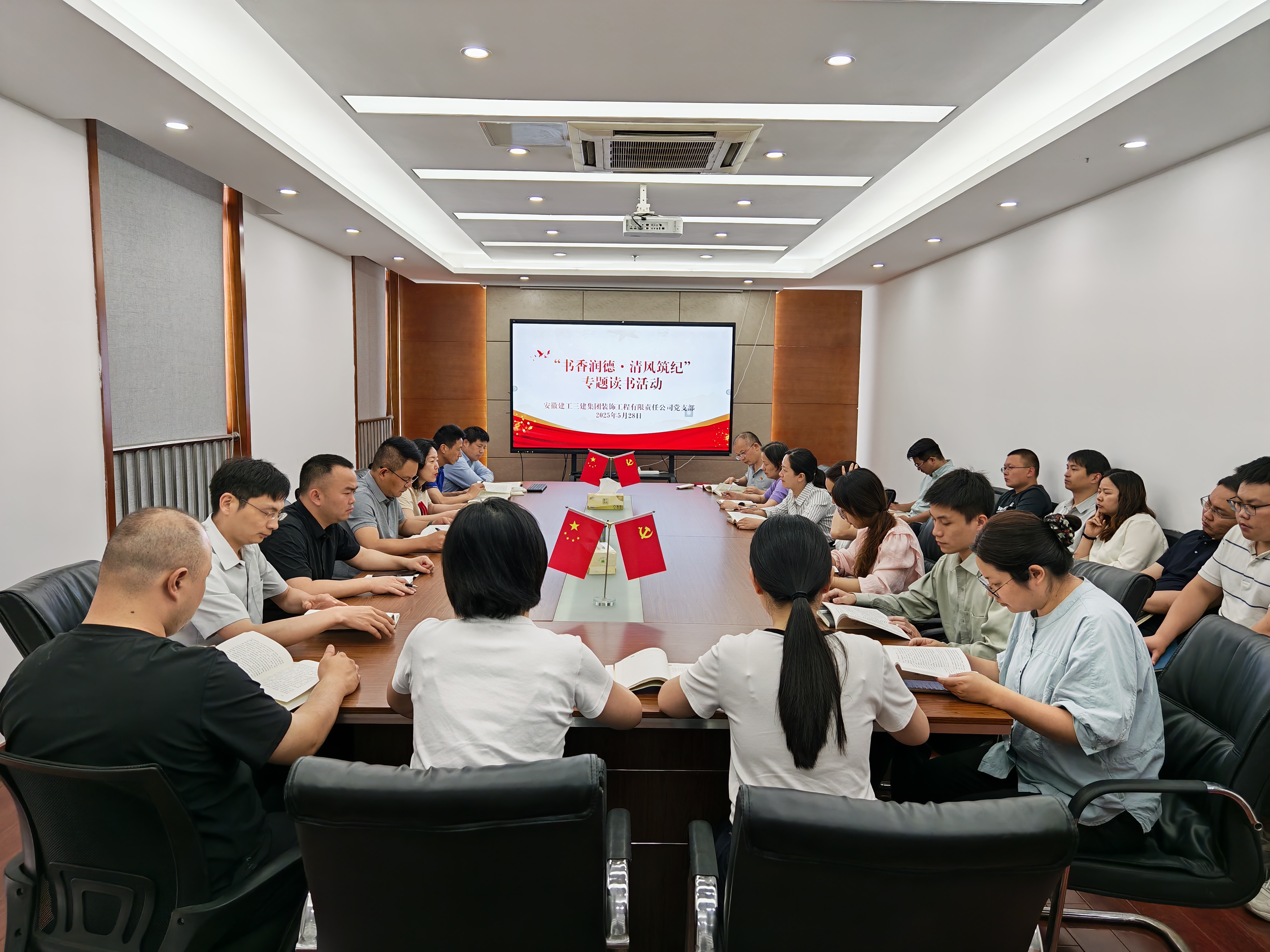 5月28日,裝飾公司在會議室組織開展了“書香潤德·清風筑紀”專題讀書活動,分公司機關和項目共20余人參加。