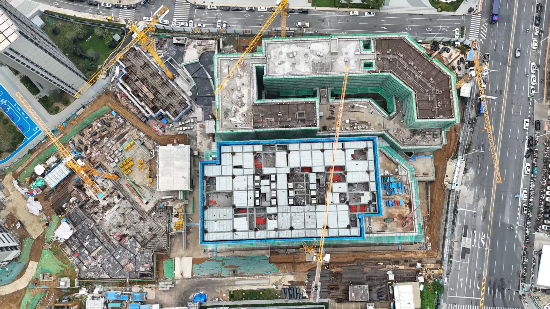 項目團隊以封頂節點為目標,構建“總工期-階段節點-月計劃-周任務-日攻堅”五級管控體系。施工中,每日召開進度碰頭會復盤進展,每周組織計劃評審會動態調配資源;面對材料進場延遲、極端天氣等突發情況,通過增配班組、優化工序穿插搶回工期,確保節點如期達成。同時,項目部嚴格執行“方案先行、過程嚴檢”原則,對鋼筋綁扎間距、混凝土坍落度等指標實行“每道工序必檢、每個節點必驗”,尤其在裙房異形構件澆筑等難點環節,安排技術骨干全程旁站監督,保障結構質量符合設計標準。