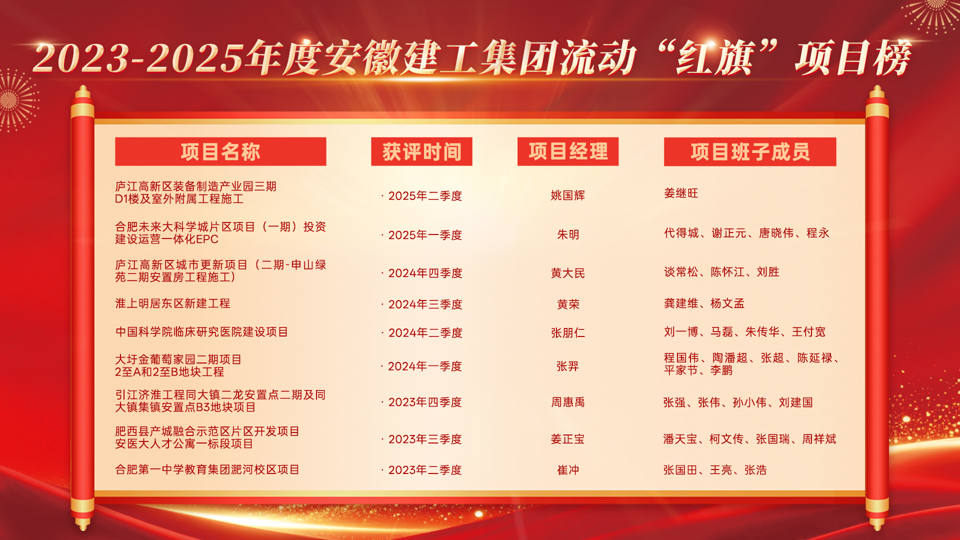 2023-2025年度安徽建工集團流動“紅旗”項目榜