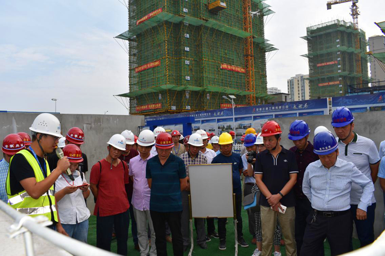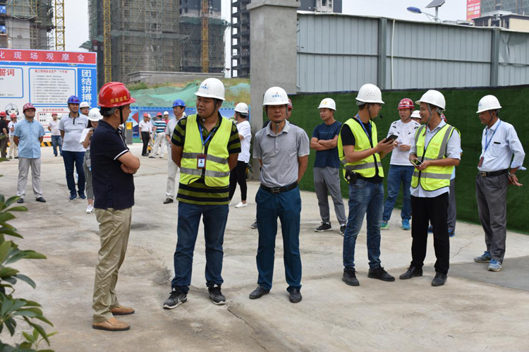 此次活動由淮南市住建委組織,通過對州來皖投·天下明珠項目現場施工工藝講解、質量樣板展示、質量樣板區展示、現場樓棟實體觀摩等形式,直觀展示了該項目在施工質量關鍵部位、關鍵工序的做法和要求。項目部著重介紹了施工中鋁合金模板及全鋼型升降腳手架等技術的應用方法及效果,得到同行觀摩人員的一致好評。