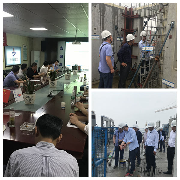5月15日下午,鳳陽縣城鄉建設局副局長王興茂帶領城鄉建設局、重點局相關人員以及萬福花園裝配式項目建設單位、監理單位、構件生產單位一行,前往濱湖沁園三標段項目觀摩交流。王興茂稱贊:“安徽三建在裝配式工程施工領域,雖然起步晚,但步子邁的快,進步巨大”。省建設工程質量安全監督總站、合肥市質量安全監督站相關負責人陪同。