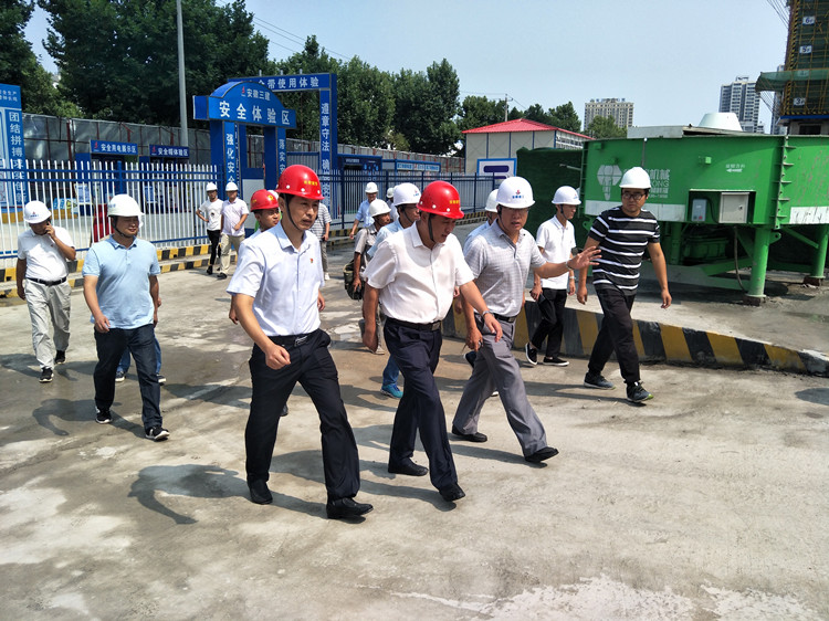 熊壽宏局長一行深入項目施工現場,聽取了項目安全生產施工管理、揚塵治理防治措施和施工消防要求等落實情況,以及項目安全生產施工的經驗和做法的匯報,肯定了項目安全文明生產以及揚塵治理工作成果。
