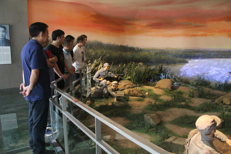 進(jìn)入紀(jì)念館中,首先印入眼簾的便是一幅巨大的新四軍浮雕壁畫,大家對(duì)場館內(nèi)五個(gè)展廳依次進(jìn)行了參觀學(xué)習(xí)。廳內(nèi)大量的歷史圖片、遺留實(shí)物、解說文字等以不同形式再現(xiàn)了當(dāng)年新四軍將士在巖寺的光輝歷程和英勇抗戰(zhàn)事跡。