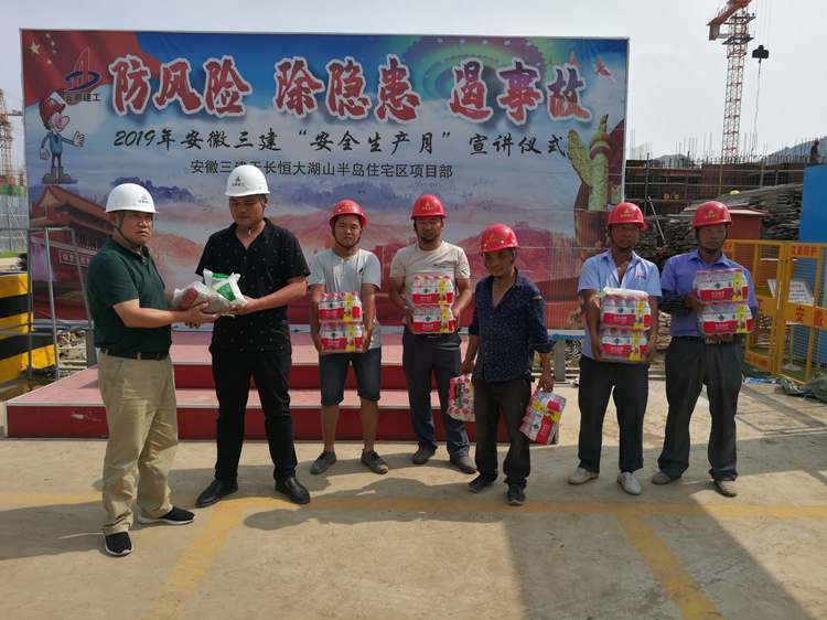 7月18日,十二公司工會到滁州東菱項目、滁州和悅郡項目、滁州三悅瀾山項目部開展“送清涼”活動,為項目一線職工送去了防暑降溫的綠豆、白糖、十滴水等清涼食品和防暑藥品。 隨后,分公司工會主席丁玉新、副經理王秋剛一行深入項目施工現場,詳細詢問了項目高溫作業中的安全防護措施情況,重點檢查了項目職工的工作和生活環境,叮囑項目經理要以人為本,避開午間高溫時段,在搶工期、抓質量中確保安全生產和文明施工。同時更要合理安排好工作、飲食和休息時間,保證足夠睡眠,切實做好高溫期間的防暑降溫工作,確保項目一線職工們度過一個安全、衛生、清涼的夏季。