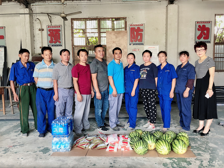 門窗公司工會為一線職工送去防暑降溫用品,確保高溫條件下職工的人身安全和健康。