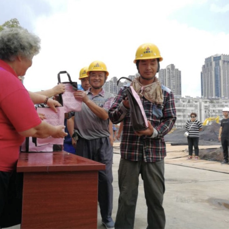 活動中,志愿者們提前為大家準備了大量的礦泉水、西瓜、綠豆湯等降暑物品,并叮囑施工人員道:“天氣太過炎熱,大家一定要注意身體,防暑為首要”。志愿者向筆者說道“項目人員為我們建樓房蓋新家,高溫天氣建筑工人們尤為辛苦!我們希望可以在炎日夏季為他們帶來絲絲涼意”,表達我們的感謝。社區(qū)工作站還分別向大家發(fā)放“酷熱易暑,牽掛有你,珍愛自己,安全生產”關愛布袋,袋中有著風油精、十滴水、毛巾等防暑降溫藥物及“三減三健,全民健身”宣傳畫冊。