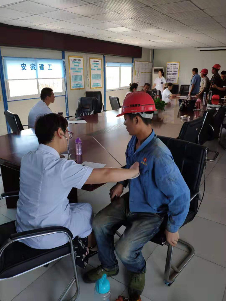8月12日上午,九公司科創北城項目部攜手三建職工醫院為項目80余名農民工兄弟進行了一次健康體檢。