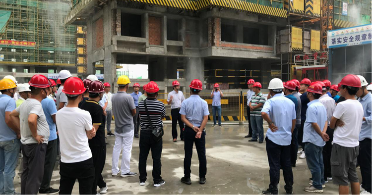 9月1號上午,淮南市建管處組織大通區、經開區所有在建項目三方負責人先后來到公司承建的網云小鎮一期二標段項目以及恒大御府項目觀摩學習現場揚塵污染防治工作。觀摩團由建管處安全站站長吳昌保、淮南市建管處第五揚塵防治網格組組長片坤領隊,兩區30多個在建項目的建設、施工、監理相關負責人共60余人組成。