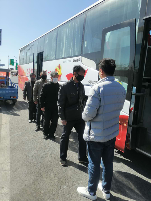 在接到煙臺(tái)市政府出臺(tái)了“點(diǎn)對(duì)點(diǎn)”接工人返崗的促企復(fù)工有關(guān)政策后,立即按照要求做好“點(diǎn)對(duì)點(diǎn)”接工人返崗的各項(xiàng)工作。項(xiàng)目部還落實(shí)“一責(zé)兩案”、“七個(gè)到位”等防疫措施,做好了大量前期準(zhǔn)備工作。一是統(tǒng)計(jì)返崗工人信息:各部門(mén)管理人員相互協(xié)作,掌握返崗工人基本情況,提前與工人所在地相關(guān)政府部門(mén)和社區(qū)做好溝通銜接工作,統(tǒng)一確定出行時(shí)間及地點(diǎn)。二是制定專(zhuān)項(xiàng)接送方案:每輛車(chē)安排2名管理人員帶隊(duì)跟車(chē),做好信息登記、防疫健康教育和實(shí)時(shí)體溫檢測(cè)等工作。三是做好抵達(dá)地交接工作:工人到達(dá)煙臺(tái)項(xiàng)目部后,管理人員有序分發(fā)口罩、消毒水、洗手液等防護(hù)物資,對(duì)所有工人建立個(gè)人健康統(tǒng)計(jì)表,體溫檢測(cè)正常方可進(jìn)入工人宿舍。項(xiàng)目部還制定復(fù)工搶工期方案,成立搶工期工作小組,責(zé)任細(xì)化到人,多措并舉,全面推進(jìn)項(xiàng)目復(fù)工工作。